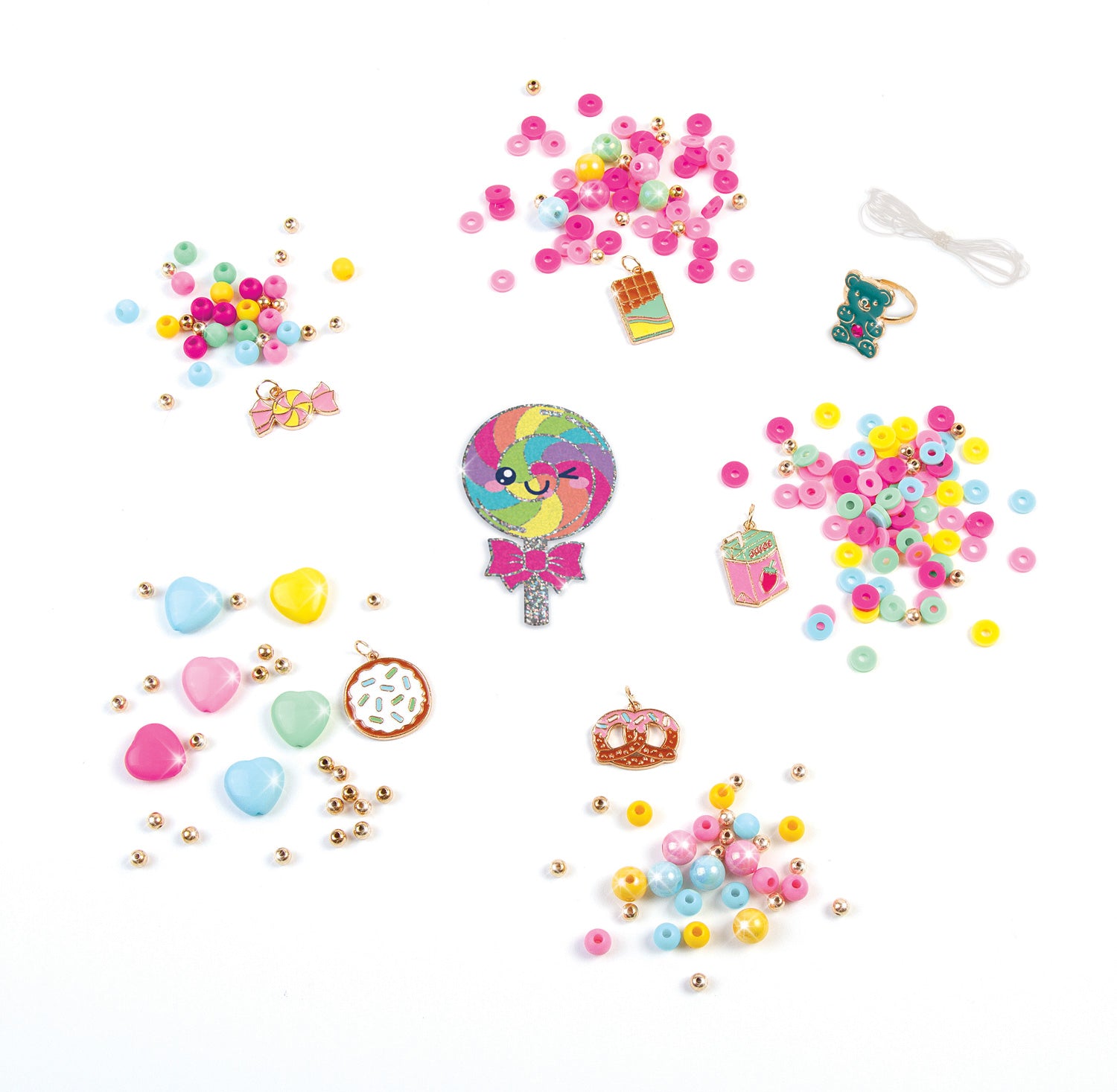 Hungry for DIY fun? This cute vending machine dispenses 5 snack-themed bracelets! Pull the tabs to open the hidden compartments and discover the crafting surprise inside. It's a fun anytime pick-me-up for tweens and teens. Create the bracelets and enjoy two sweet surprises! Includes 223 assorted beads, 5 charms, 1 clear elastic 2.2yd cord, 1 surprise sticker, 1 surprise ring, and instruction sheet.