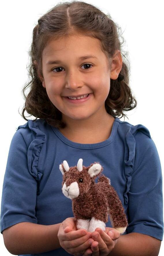 Meet Buffy, our sweet Goat stuffed animal! Buffy is a baby Goat who loves cavorting around her grassy paddock, nibbling grass and whatever other objects she comes across. But at the end of the day all she wants to do is snuggle up and rest. Made with our ultra soft Kohair material, Buffy is a cuddly companion. At only 6” she fits perfectly in the palm of your hand or even your pocket. And though she is little, she certainly isn’t lacking on detail! Buffy features small horns, cloven feet, and bright black eyes. Stitched facial detailing completes the appearance of this adorable barnyard friend. Adopt Buffy the baby Goat plush today!