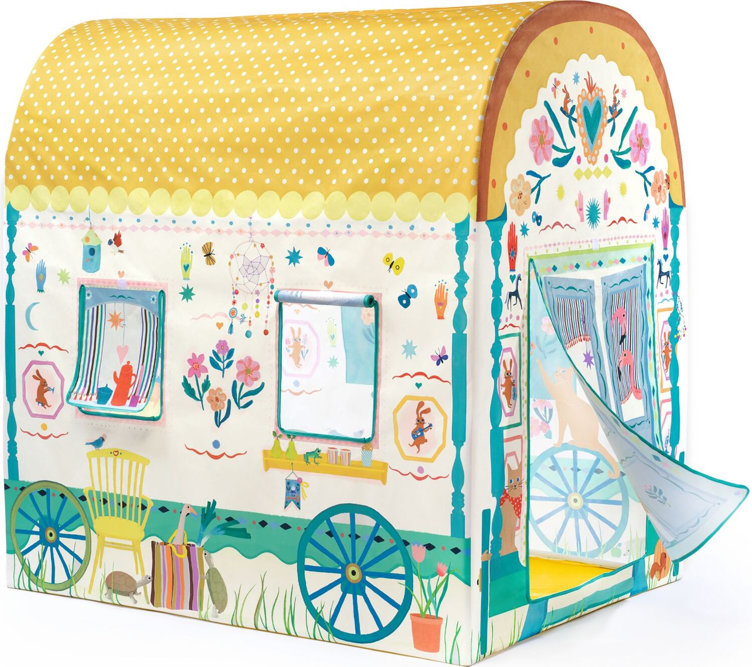 A dream house, even for grown-ups! With windows and a door that closes, this big, flowery playhouse with its little animal visitors is the perfect place for children to play!