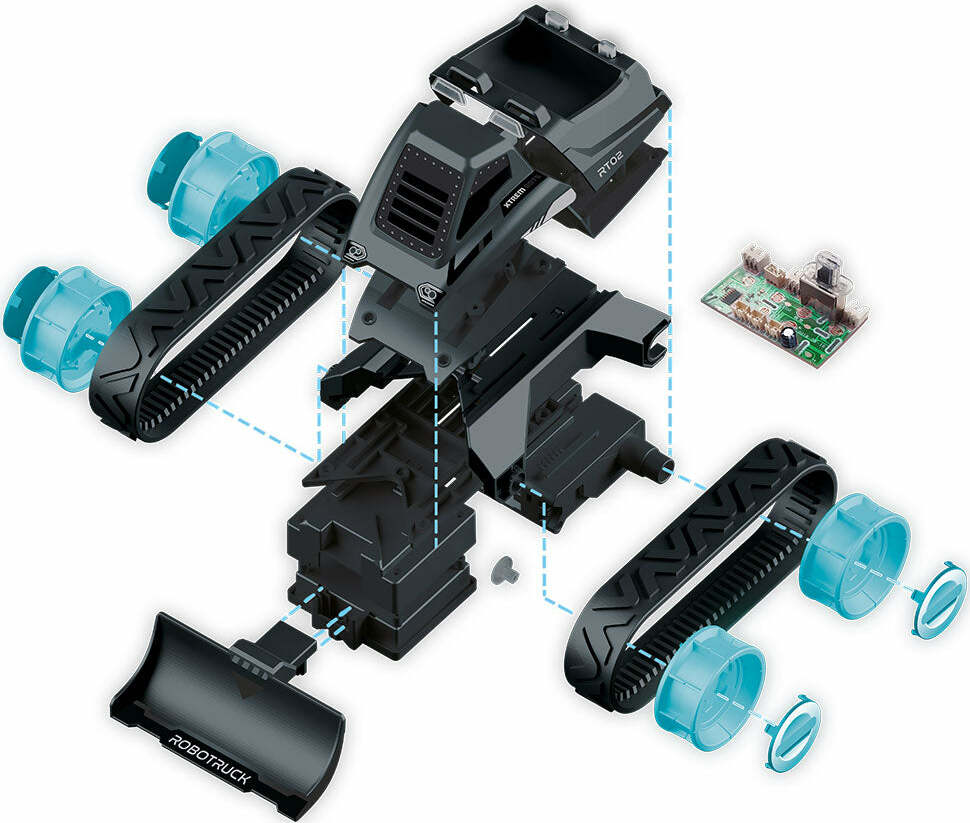 Build a powerful robotic bulldozer and sleek handheld wireless controller. Then use the controller to command your robot to move around in all directions, play sounds, and light up its cab roof lights. The special Code+Control wireless unit enables you to either directly control your Robo Dozr in real time, or write and save sequences of commands for the robot to perform at the push of a button. No app or separate devices are required! With LED lights, a speaker, two motors, flexible tracks, a truck bed, and a hefty bulldozer blade, the Robo Dozr is packed with power and ready for action.