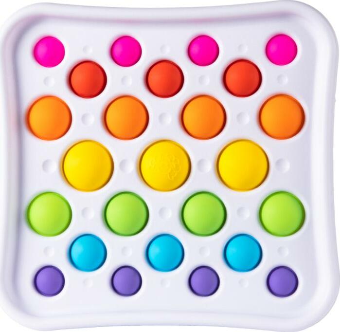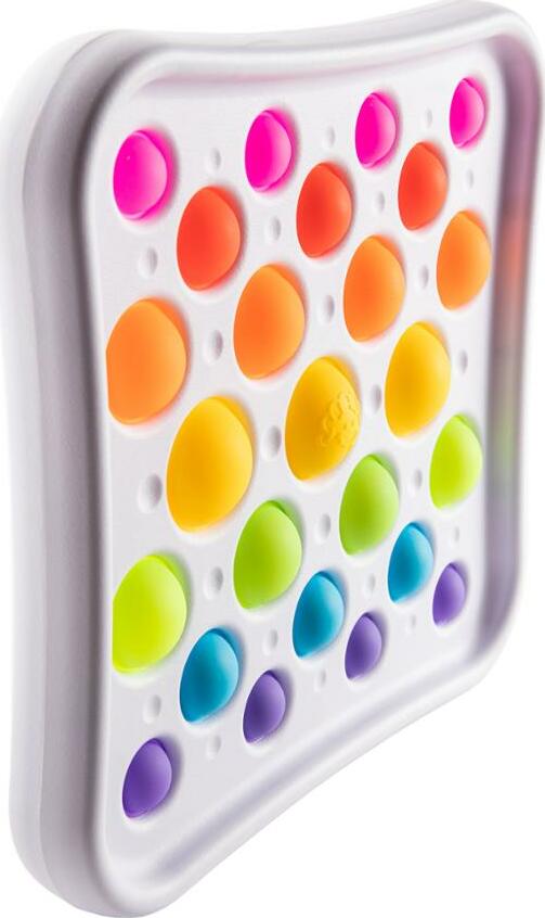 Built into the strong, high-quality plastic frame are 25 dimpl™ bubbles in four different sizes just waiting to be pushed, poked, and popped again and again.