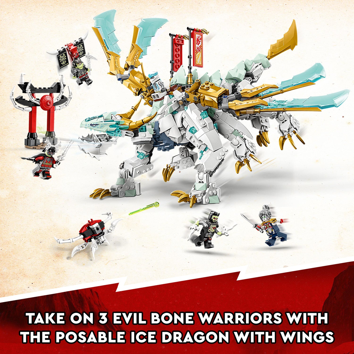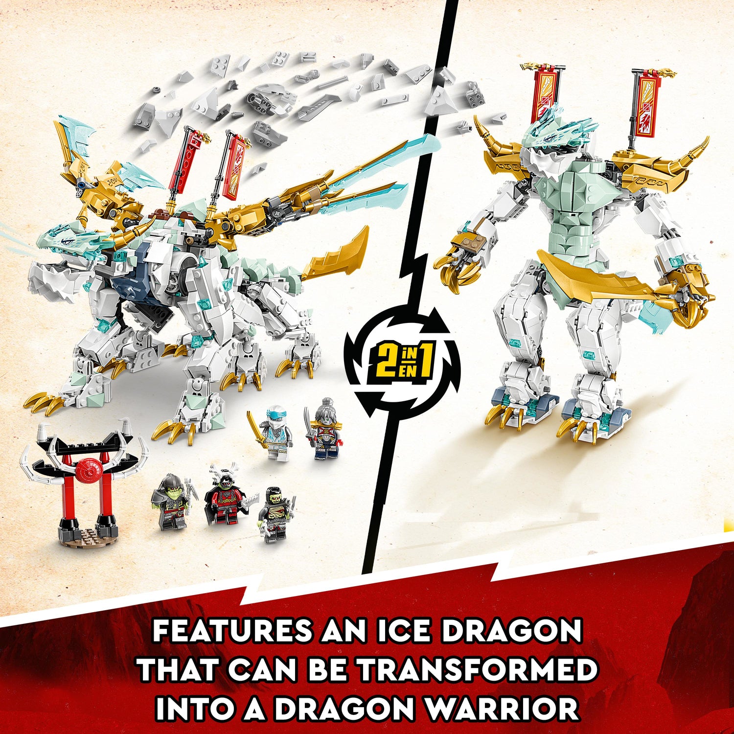 - This 2in1 LEGO NINJAGO building toy set features a posable ice dragon toy that can be rebuilt into an awesome dragon warrior action figure