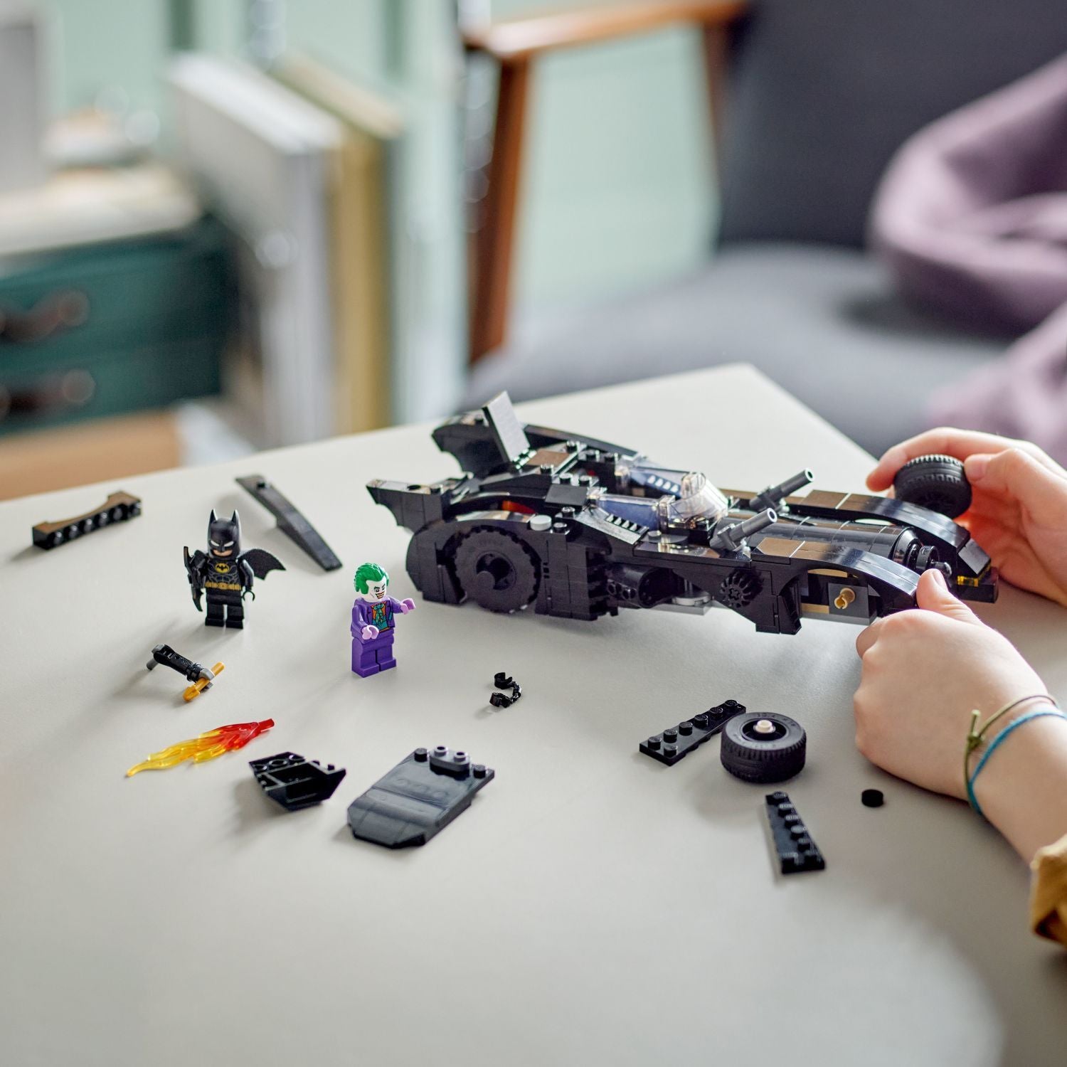 - Authentic action – The vehicle features an accessible cockpit for the Batman™ minifigure, a control that raises 2 blasters into position, a flip-open trunk and a flaming tailpipe