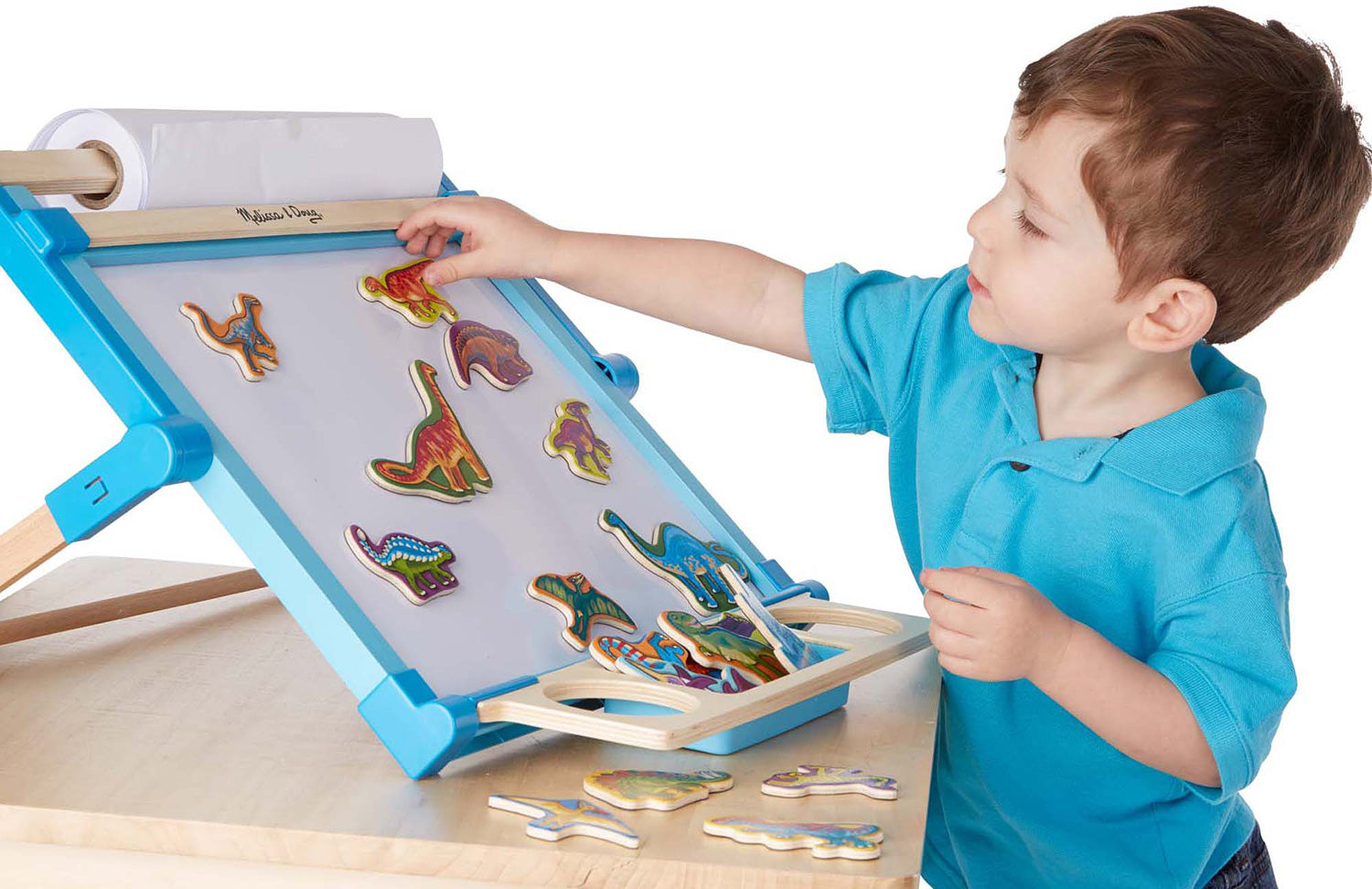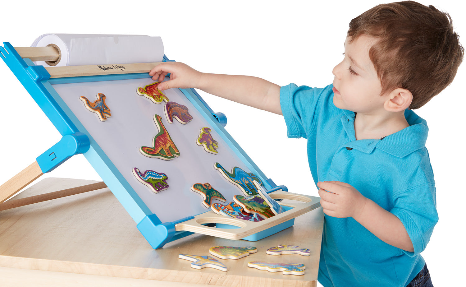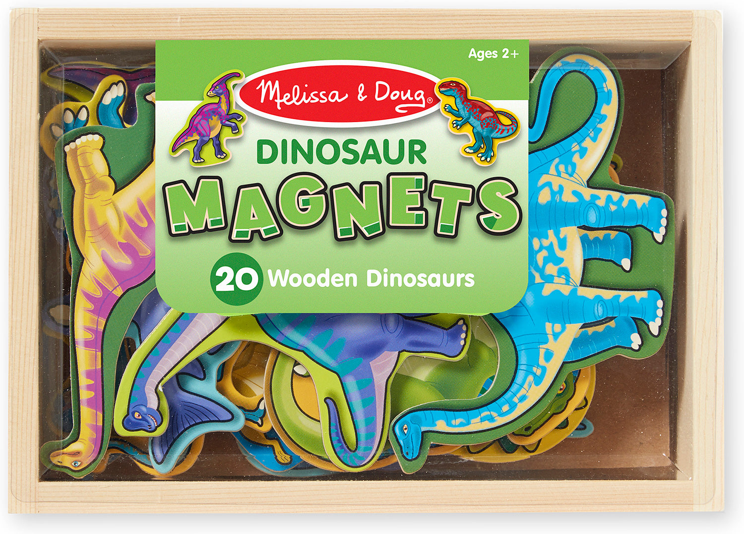 Twenty magnetic dinosaurs eager to play in the twenty-first century! Bright colors add excitement to this dino collection contained in a convenient wooden case.