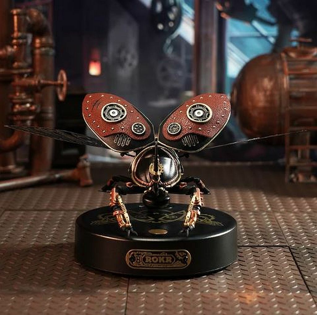 The Rhinoceros Beetle MI01 is the third product of Rokr's DIY Mechanic Organism 3D puzzle Series after the Storm Beetle MI03. Inspired by the real rhinoceros beetle in nature, their designers combined steampunk elements with it to create a highly mechanical aesthetic rhinoceros beetle model while retaining its details, such as the body shape, horn, legs and wings. The main body of the beetle is made of ABS polymer structure material with good impact resistance, the hard wings are covered with leather, and the limbs are made of soft PVC material to protect the model better.