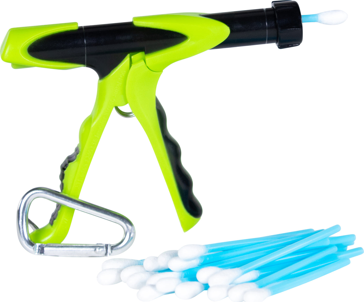 Micro Blaster Q-Shot fires a cotton swab up to 20 feet! Insert swab into the end of barrel until you hear a click, then squeeze the handles together to launch the soft cotton swab!