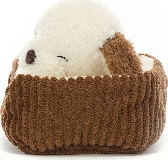 Napping Nipper Dog can leave that snug basket, but be honest - would you? Toffee cord to match those soft ears, with a cosy custard lining, it's the perfect place for a snoozy pooch! Pop this lemon-cream pup on your desk to remind you to take a well-deserved break!