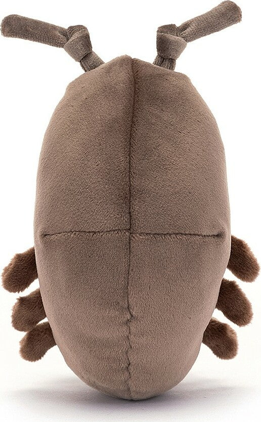 Niggly Wiggly Woody Woodlouse is often found under rocks and stones! A chunky chocolate mini-matey, with beige bobble segments and teeny legs, Woody sits up to say hallo! With knotted antennae, a cheery grin and a wonderful beany bottom, this bug is ready to roll!