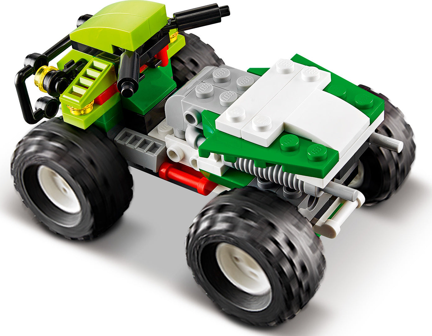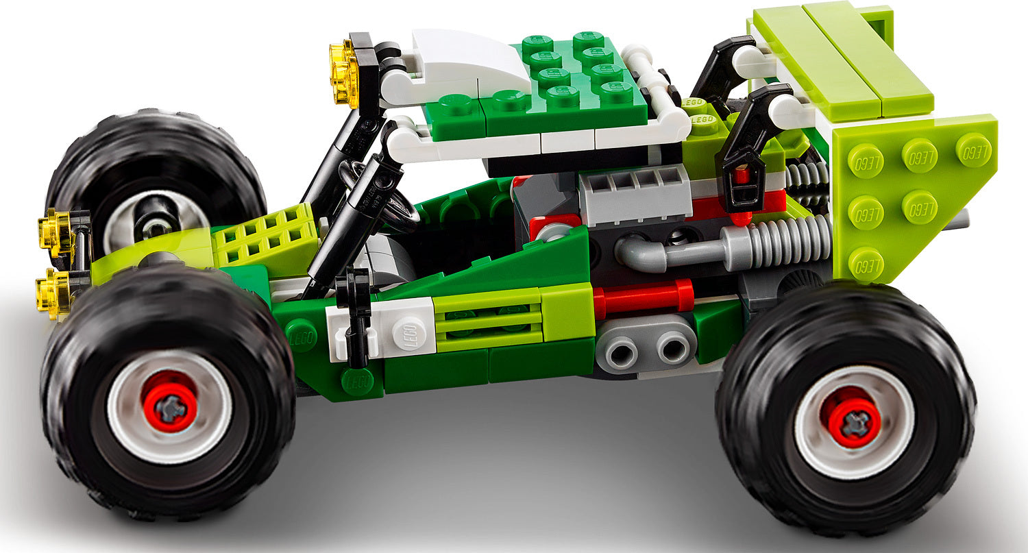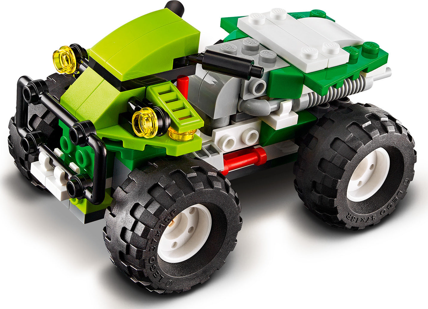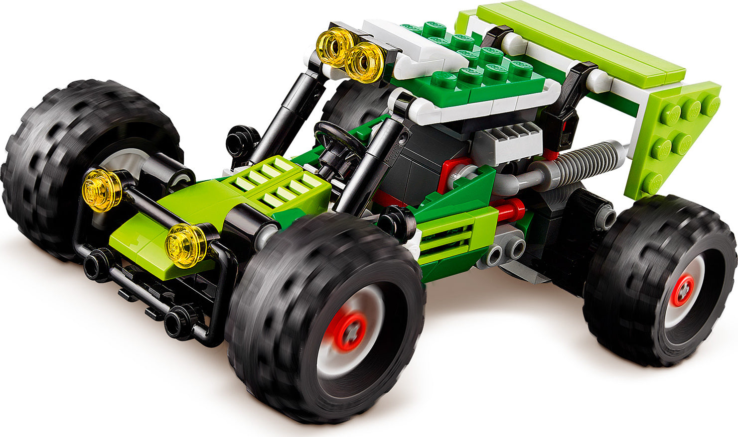 Kids can enjoy 3 different build-and-play experiences with this LEGO Creator 3in1 toy set. They can build the Off-road Buggy and then rebuild it into a powerful skid loader with cool lifting platform, make an ATV (All-Terrain Vehicle) for more racing action, or use their imaginations and the same set of bricks to create something new.