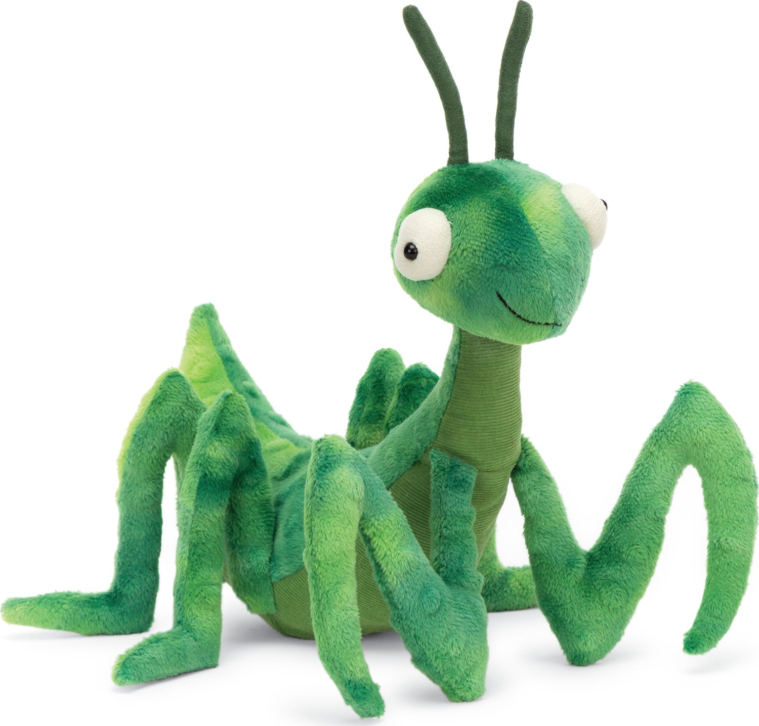 Penny Praying Mantis is a lovely jumble of legs, bug eyes and bendy body! With mottled fur in shades of emerald and pear, a fine cordy tummy and pert suedey feelers, this impish insect makes a dazzling companion though she does sometimes get a bit discombobulated!
