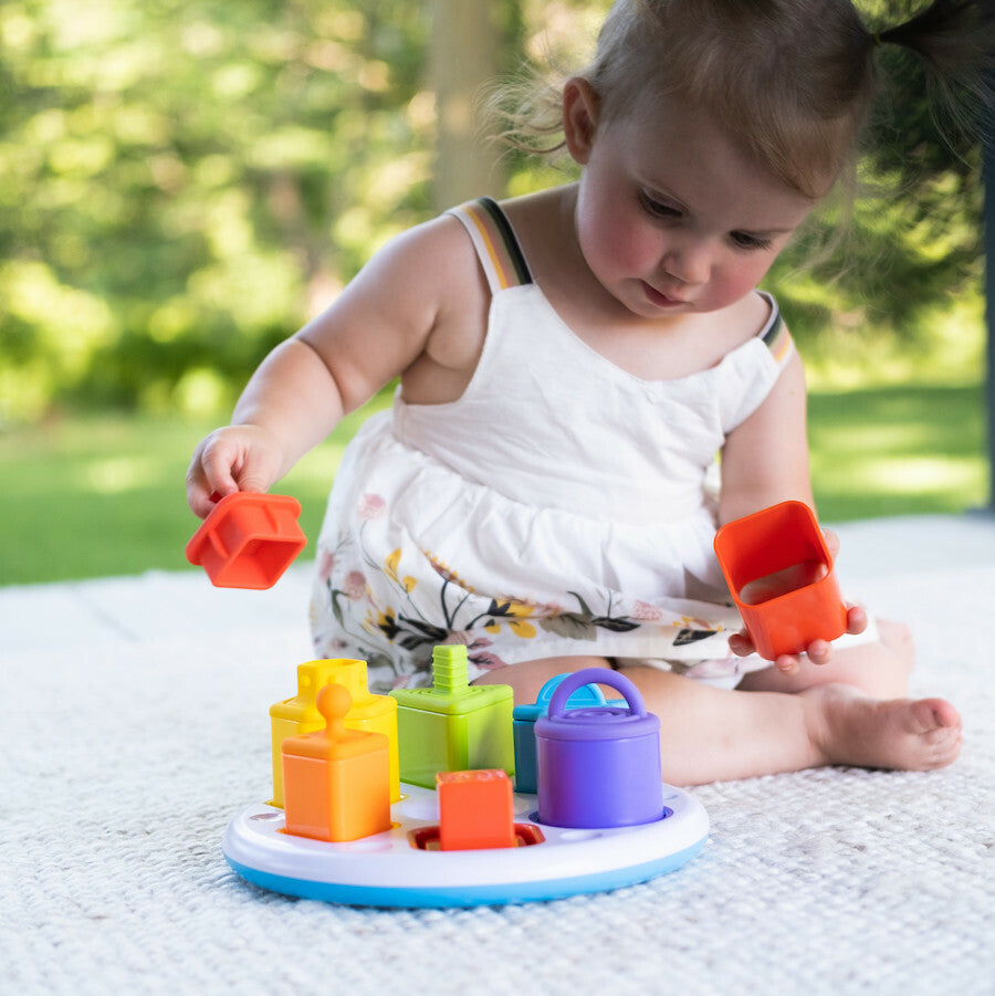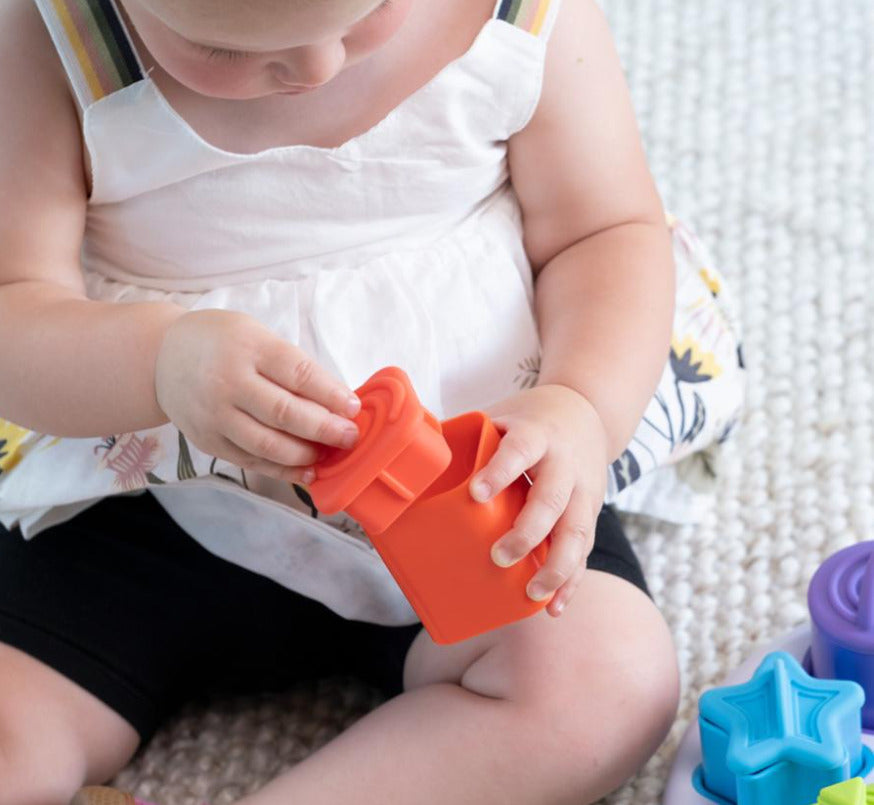 - Encourages fine motor skills, sensory learning, spatial reasoning, shape-matching, exploration