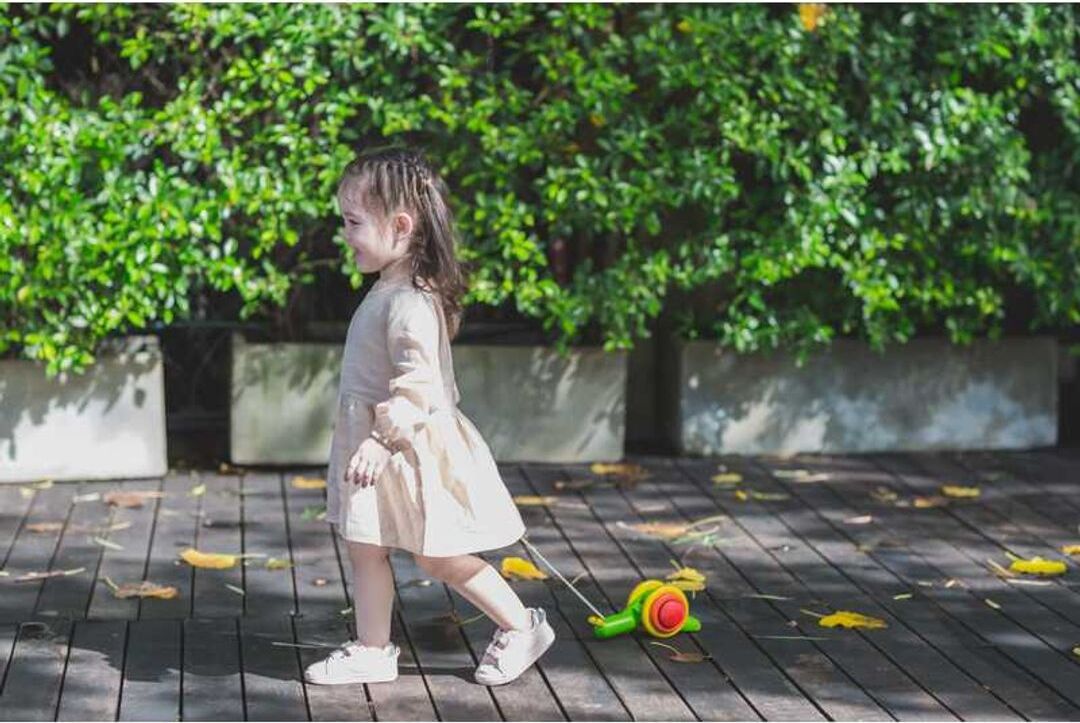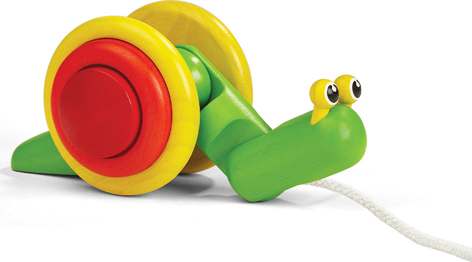 When children pull the snail, it inches and crawls along the floor. This toy helps develop fine motor, gross motor, and coordination skills.