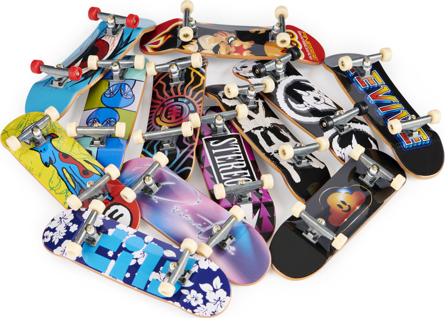 Real boards. Real graphics. Real stunts. Pull off epic tricks with Tech Deck’s authentic 96mm fingerboards! From nose to tail, Tech Deck fingerboards are engineered to replicate the feel of a real skateboard. Each fingerboard features authentic graphics from the biggest skate companies in the world. Collect boards with iconic designs from Blind, Toy Machine, Alien Workshop, Finesse, Revive, Primitive, Zero, Flip and more. With so many to collect, you never know which one you will get! Find them all and build out a collection worthy of a legit fingerboard fanatic! Each board comes with decal sheets – ideal for creating a custom board. Just like a pro fingerboarder, learn the basic tricks and then hit the rails and perfect your kickflip, ollie and shuvit. Tech Deck 96mm skateboards are for skate-lovers ages 6 and up. Collect them all and become a pro fingerboarder!